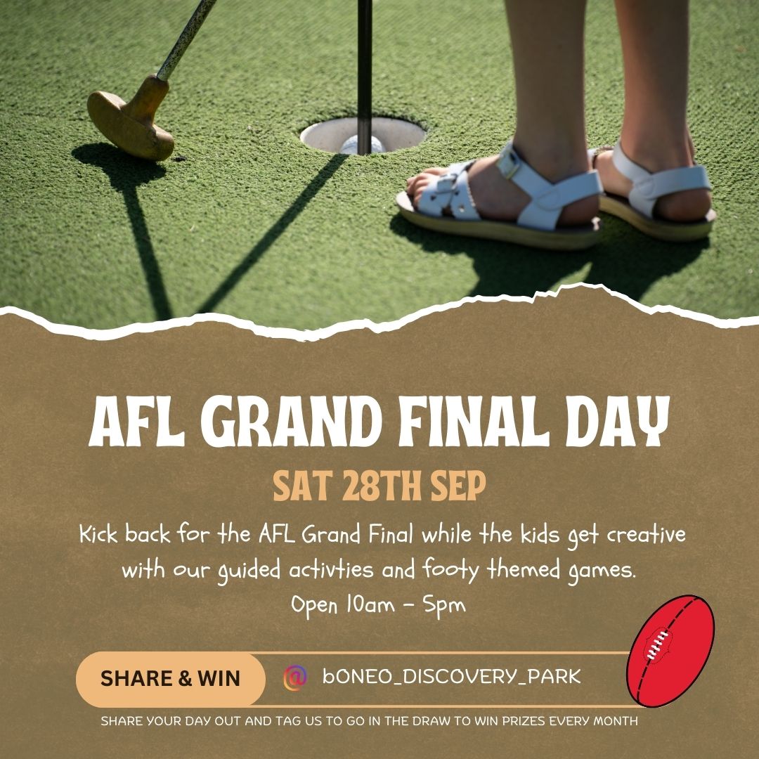 Looking for the perfect way to enjoy the AFL Grand Final with the family? Kick back and relax while we keep the kids entertained at Boneo Discovery Park! Our AFL-themed day offers guided activities, footy-inspired games, and free face painting, ensuring the little ones are having as much fun as you are.